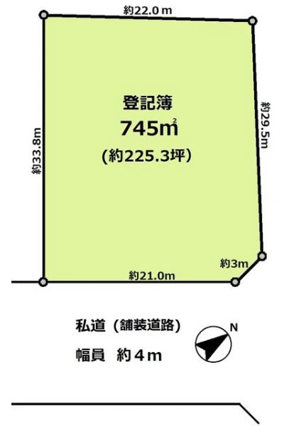 | 土地面積 | 745㎡(公簿) | 私道面積 | 私道負担面積有 163㎡ |