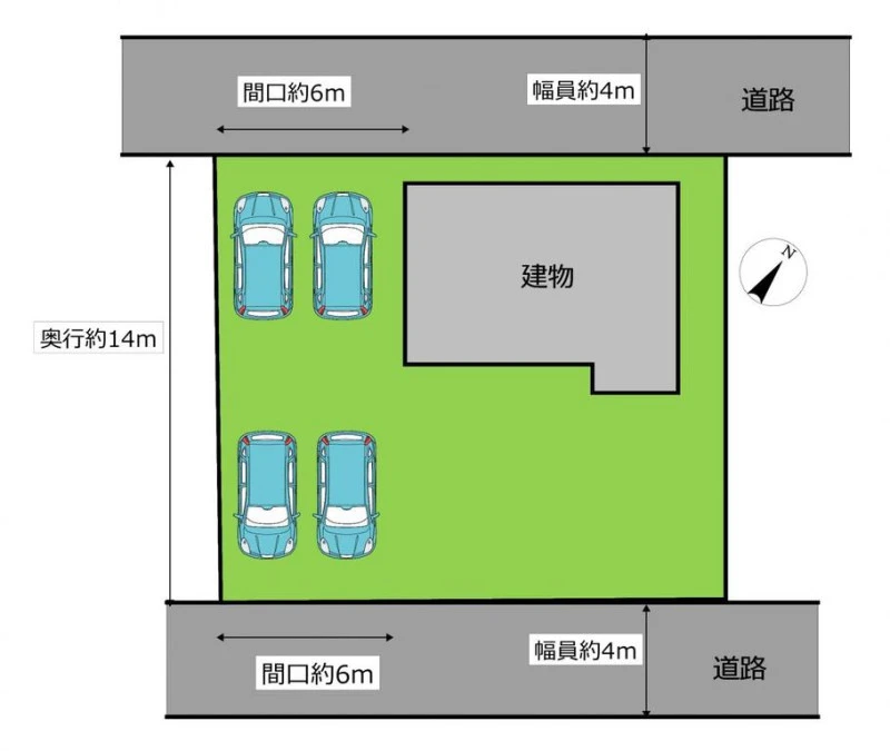 二方(除角地) 北 公道 幅4m 南 公道 幅4m |