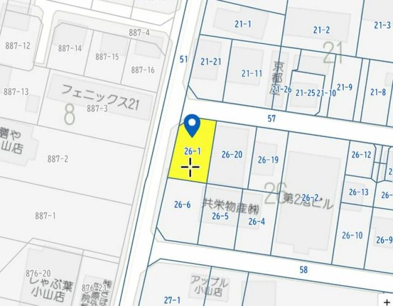 ※地図上の「対象地」は「栃木県小山市駅南町2丁目 」付近を示しています。実際の場所ではない場合がございます。詳しくはお問い合わせください。
