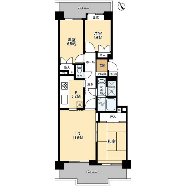 | 間取り | 3LDK | 間取り向き | (角部屋) |