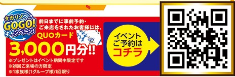 今なら、事前にご来店予約をしていただくだけで『QUOカード最大3000円分』をプレゼント。