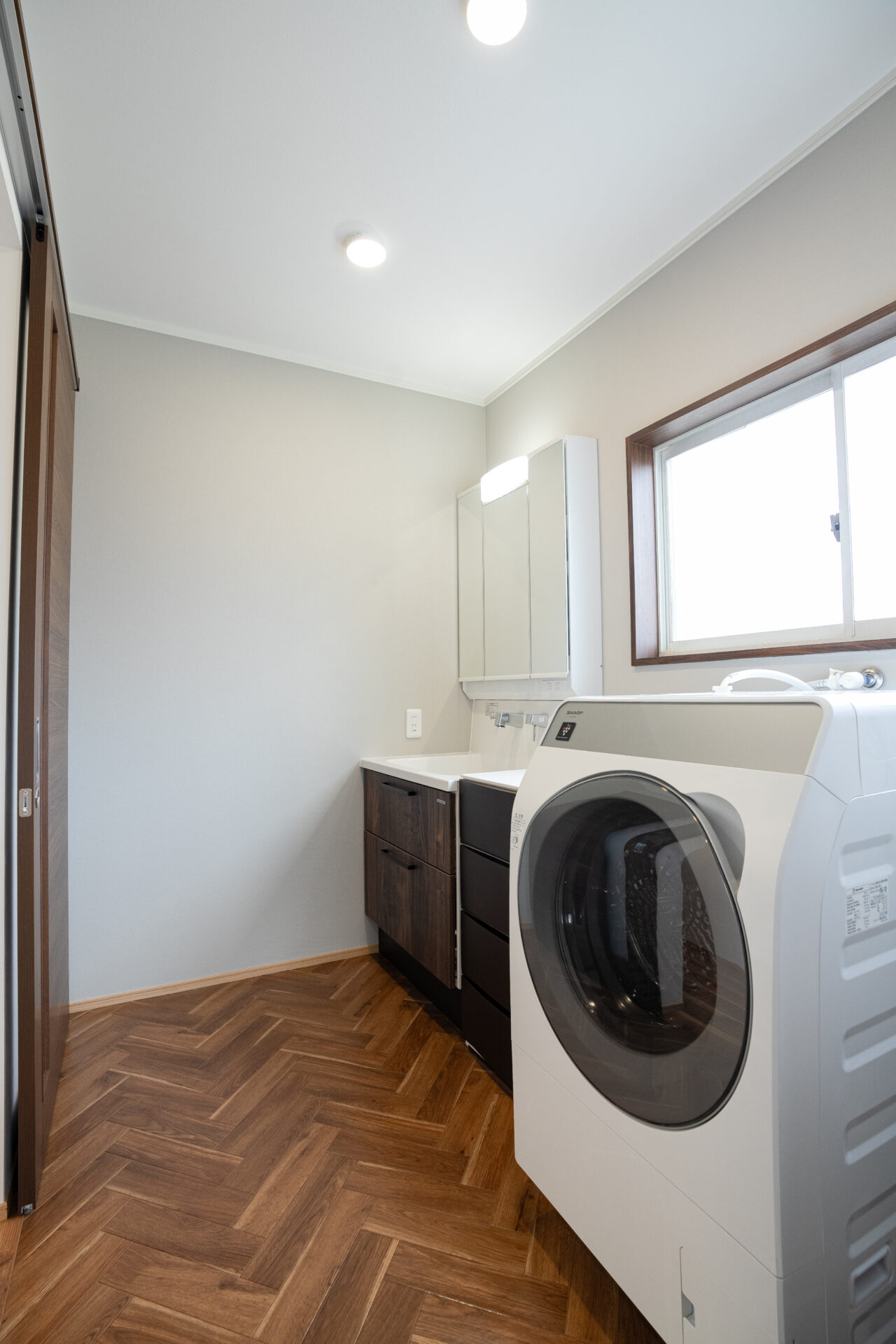 建具・床・クロスのリノベーションを行い、オシャレな洗面所へ