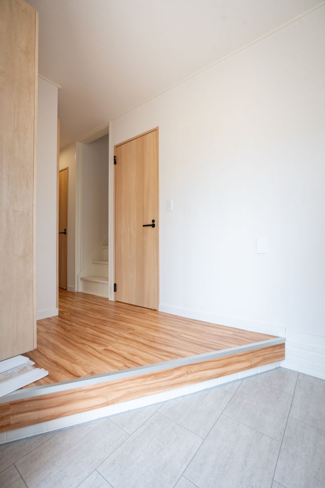 帰りたくなるお家へ変身。木質感ある玄関ドアがお出迎えしてくれます!