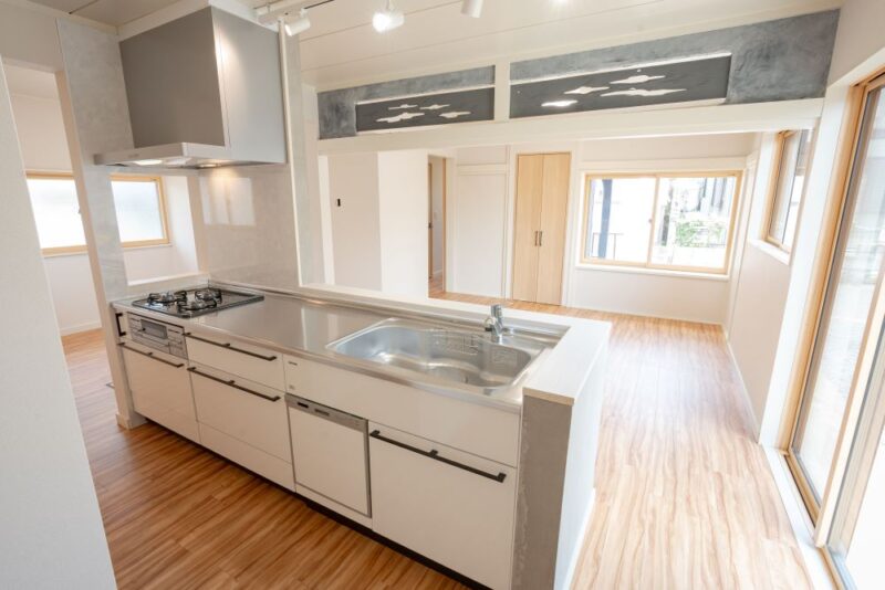 壁付けキッチンを対面キッチンにし、家族との繋がりを感じる空間へ