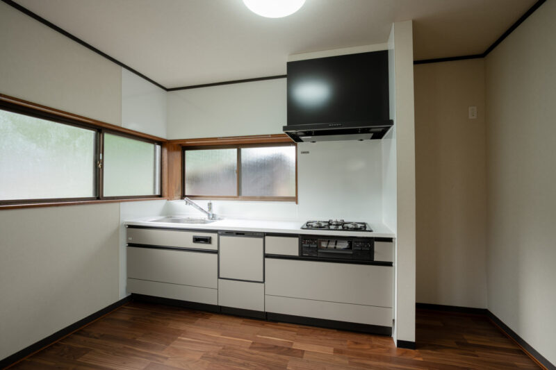 外壁塗装、外構工事(植栽伐採)、間取り変更、全クロス貼替、床張替、水回り設備4点セット交換(キッチン、バス、洗面台、トイレ)、LED照明交換