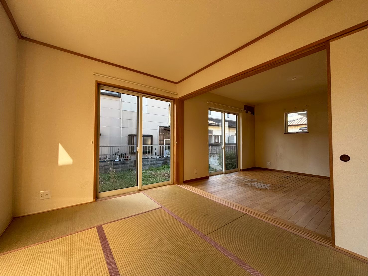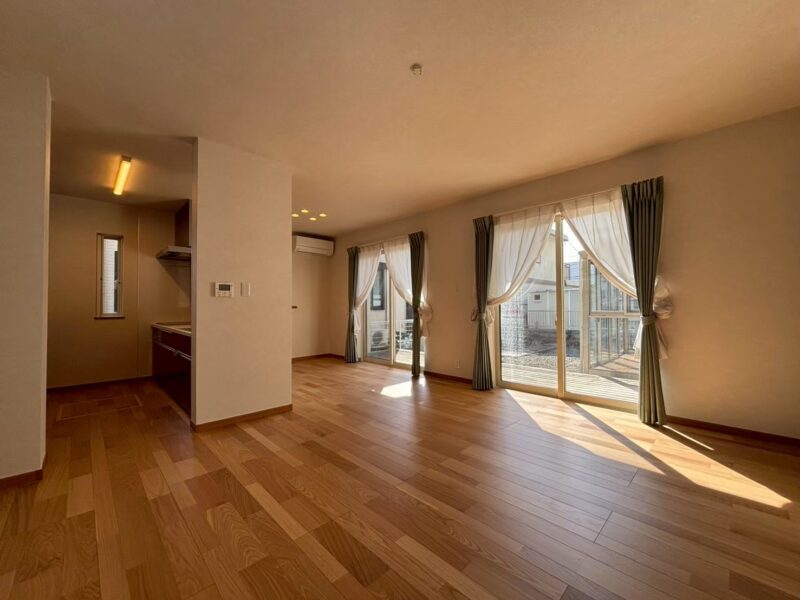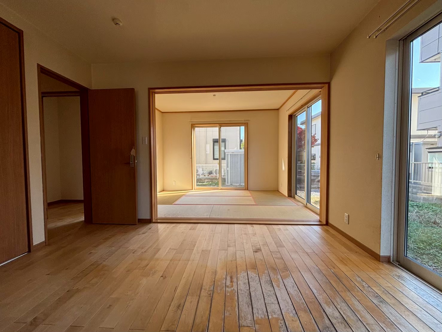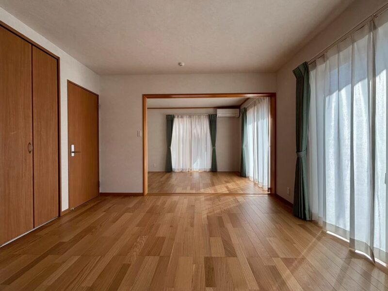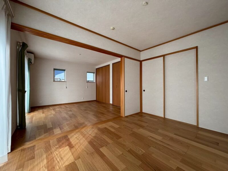 1階フローリング張替、1階クロス張替、1階和室→洋室変更、1階・2階トイレ新品入替、ガス給湯器交換、ハウスクリーニング、カーテン取付、エアコン全室設置、サンルーム移設