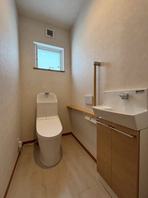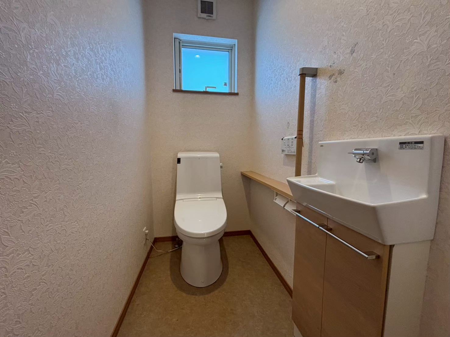 トイレの入れ替えに伴い、床壁天井も張替えました。