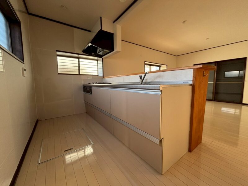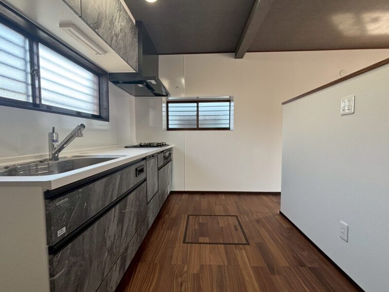 現状のキッチンでは、食器棚が設置できませんでした。壁付けのキッチンにすることで、食器棚を上手に納められるようリフォームしました♪